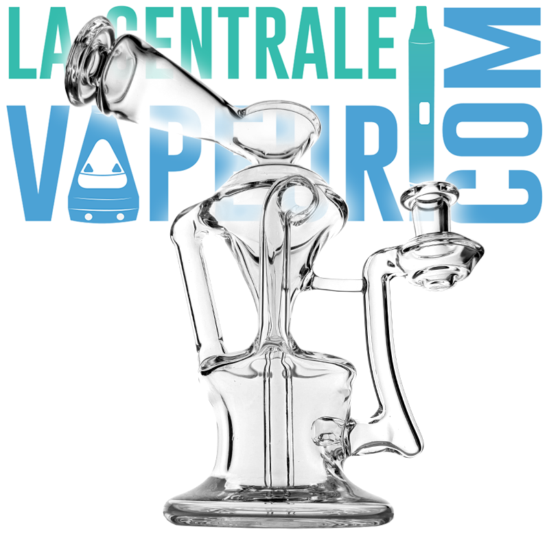 Recyklátor Hashba Glass z borosilikátového skla, se třemi perkolačními otvory a dvěma odběry. Dodává se v krabici PeliCase s podložkou Moodmat Hashba.