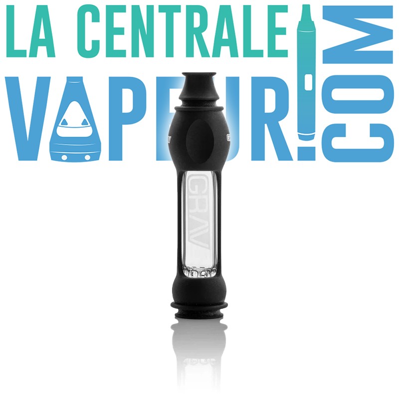 Skleněná ochutnávka zabalená do silikonového pláště tlumícího nárazy (jako Slingstash Dynavap) od Američanů z GRAV Labs.