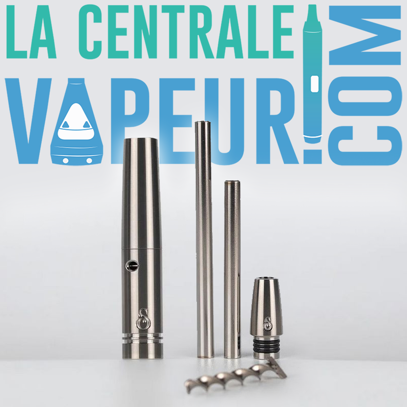 Den är tillverkad av titan och kan demonteras i tre delar för ännu fräschare ånga. Den har två luftintag, varav det ena är justerbart, och levereras med två kondensatorer (en kort och en lång).