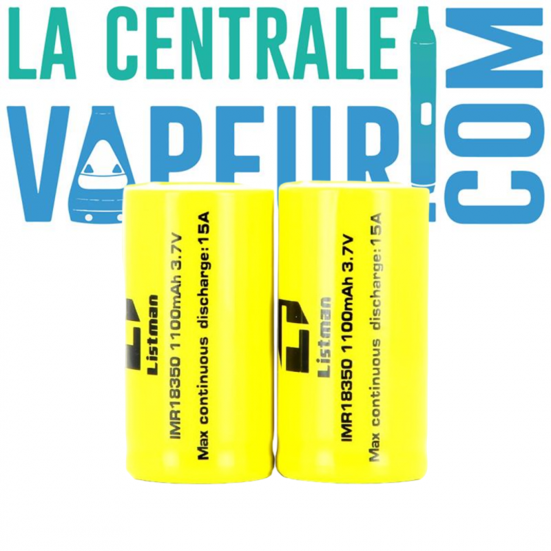 Två batterier av storlek 18350 med 1100 mAh kapacitet och 15A kontinuerlig urladdningsström.