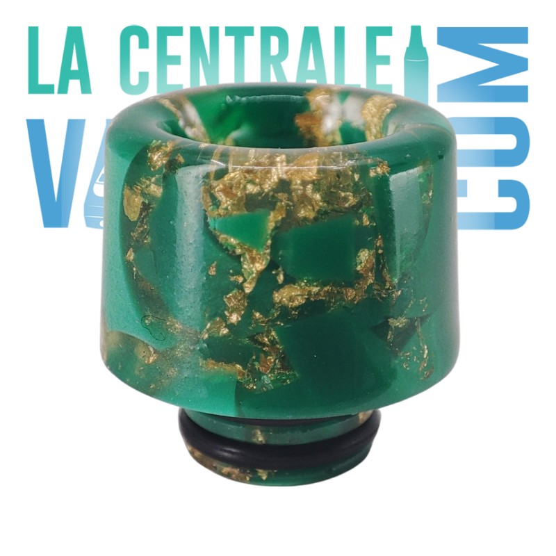 510 Epoxy Large Golden Nugget-droppspetsen kännetecknas av sin bredare form och gyllene chips inbäddade i hartset. Den är bekväm och stabil och passar till clearomizers i 510-format samtidigt som den ger en originell visuell touch. Den är enkel att installera och sitter på plats även vid daglig användning.